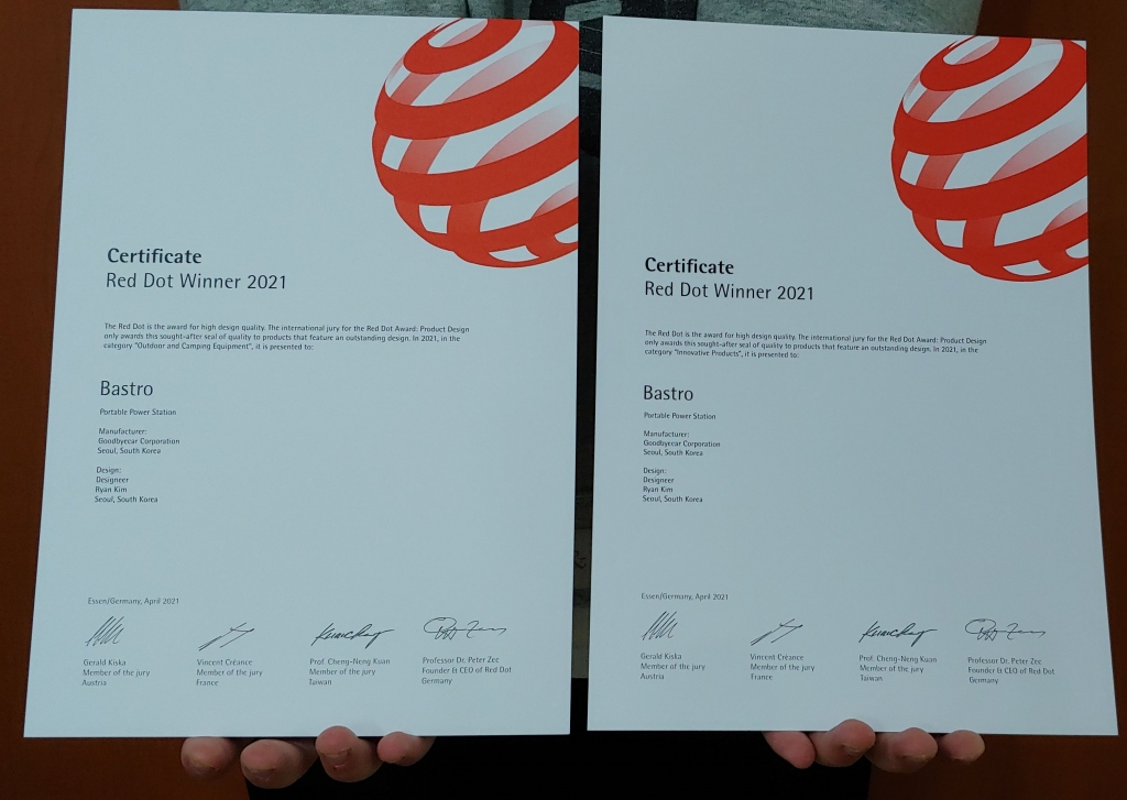 국제 3대 디자인공모전 중 하나인 Red Dot 2021 본상 인증서를 받았습니다. 2021-05-27 2887