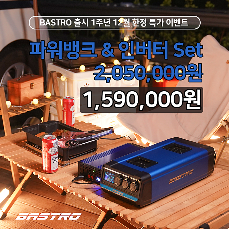 2kWh 바스트로 BASTRO 파워뱅크와 1kW 인버터가 159만원에 12월에 한정 특가 판매합니다 2021-12-01 2051