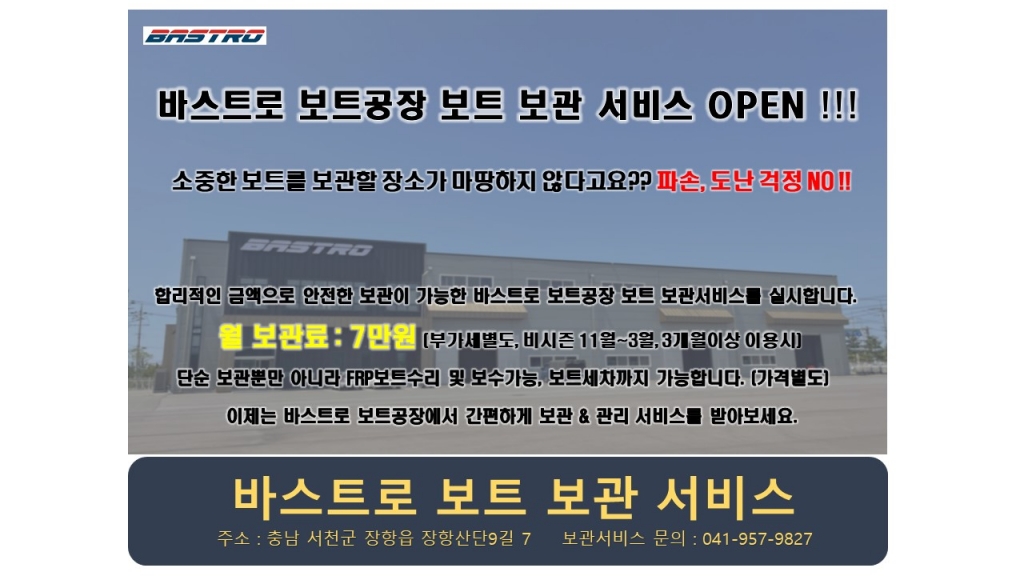 충남 장항읍 바스트로 보트공장에서 보트 보관 서비스합니다. 2022-09-22 1759